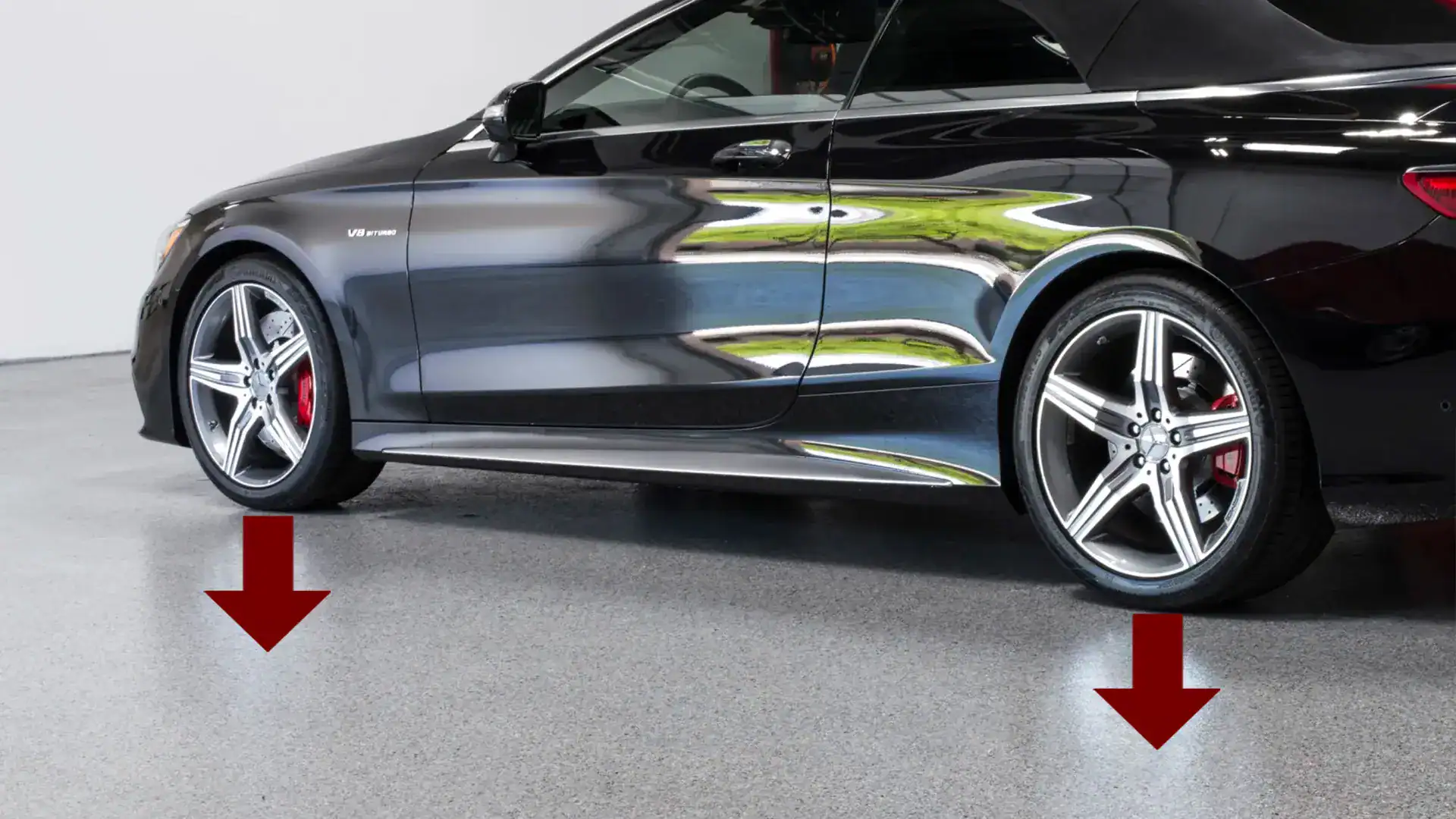 When parked, those plasticizers transfer into the garage floor coating below. Over time, this causes staining, surface softening, and eventual adhesion breakdown.
