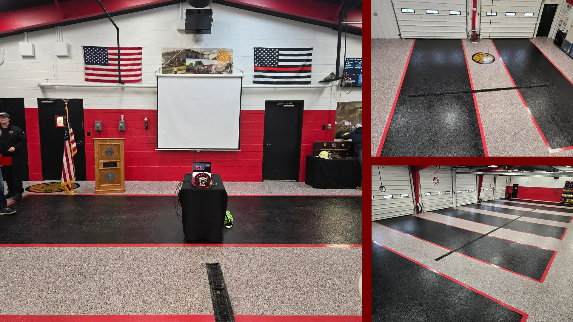 Firehouses are more than garages, they’re symbols of civic pride. This installation incorporated custom color borders and multiple flake layers to create a clean, professional look that reflects the station’s identity.
